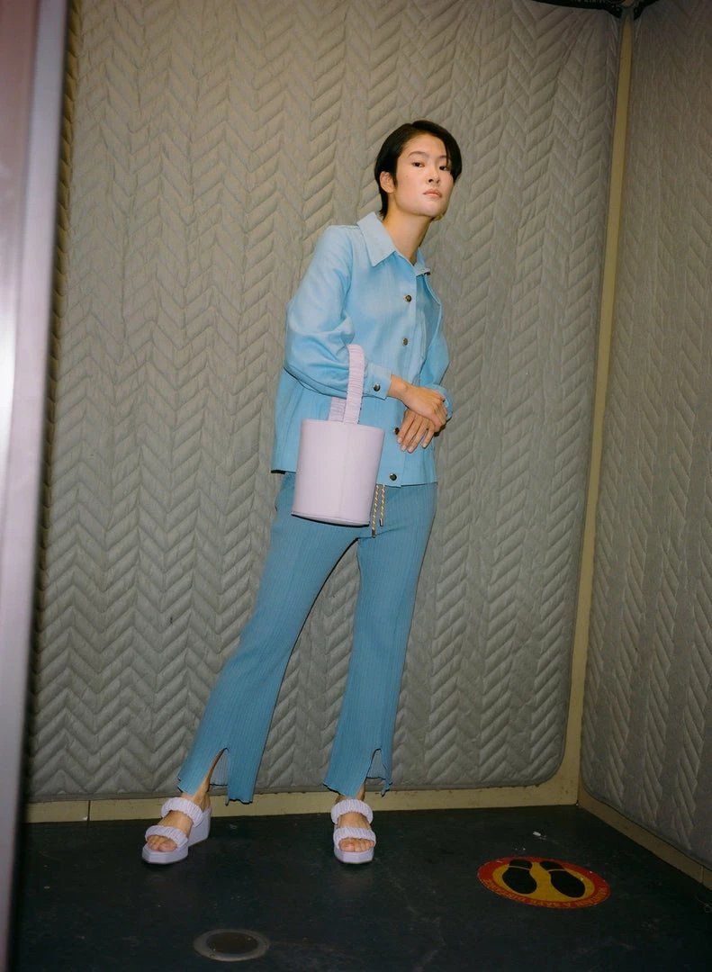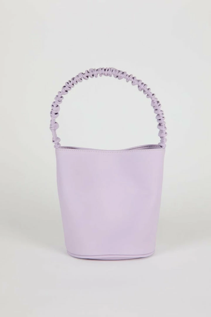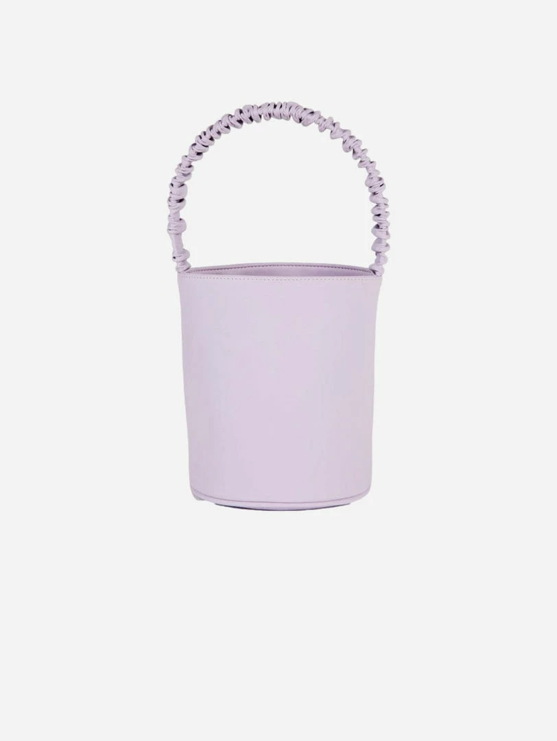 The Scrunchie Bucket is HOZEN’s limited edition, collaboration vegan leather bucket bag with a scrunchie-style handle that matches the accompanying Phorna Scrunchie Flatform sandals.
