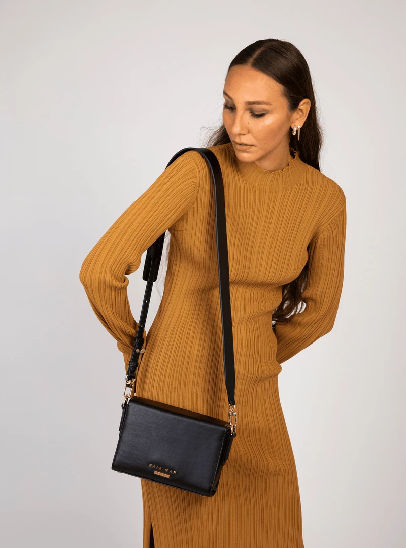 The Kaia bag is 100% vegan, made with high-quality cactus leather with a smooth and elegant texture. This bag reflects the beauty of simplicity and the value of small details. It is versatile through it’s modular transformation of the straps, you can use it for any occasion, from going to a party, a dinner, a walk to going to the park. Â