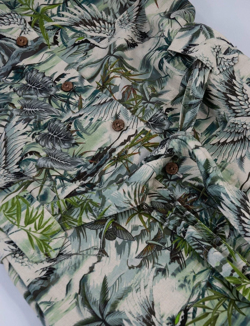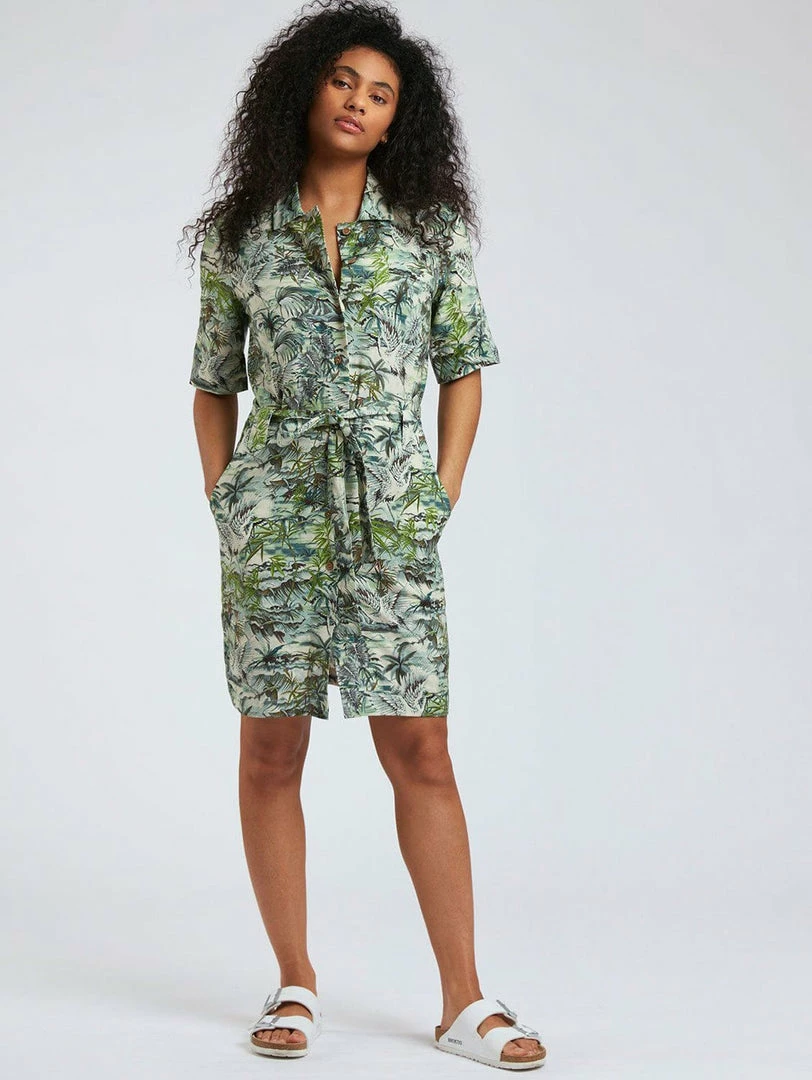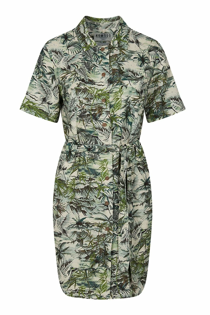 Get ready for the Spring Summer season with the stylish and feminine Sun Dress. This sleek and sophisticated tailored silhouette features a straight shirt collar and covered buttons with shorter sleeves ideal for the summer season. This all over eye-catching print is inspired by the tropical seasons in Bali and is bound to make a statement!