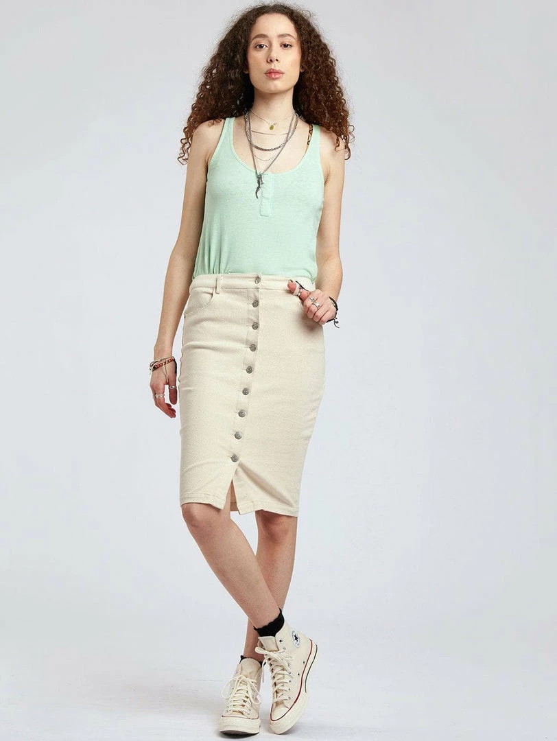 Refresh your summer style with the Sundara Skirt. This season’s essential features a sophisticated midi length with multiple front button fastenings and belt loops—just in case you want to kick the styling up a notch! Made out of organic cotton keeping your spring summer wardrobe sustainable and stylish with Komodo.