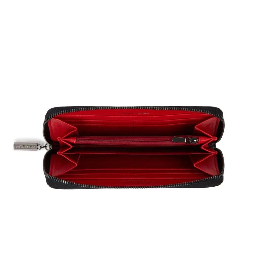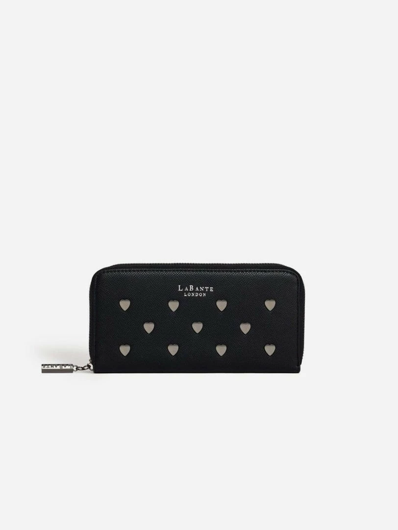 A luxurious zip around wallet that is essential for the everyday woman. This spacious design features heart studs and the LaBante London logo, an internal zip pocket, multiple interior card slots and a note compartment.