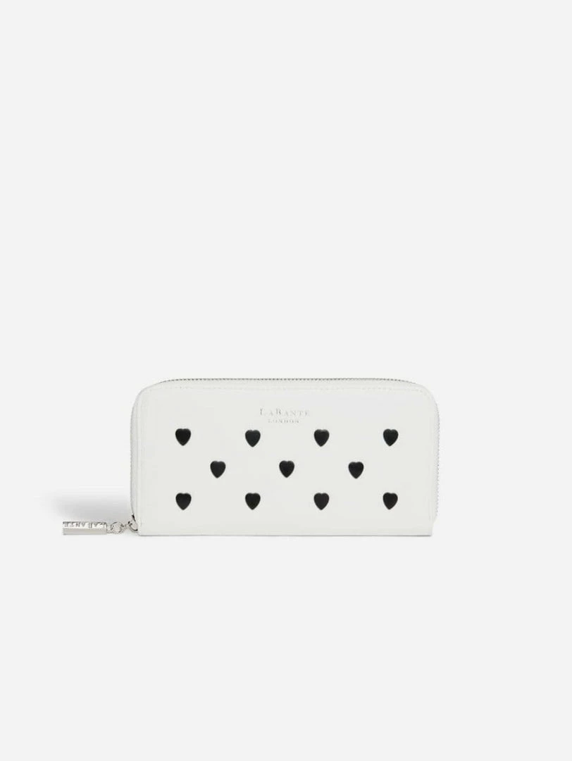 A luxurious zip around wallet that is essential for the everyday woman. This spacious design features heart studs and the LaBante London logo, an internal zip pocket, multiple interior card slots and a note compartment.