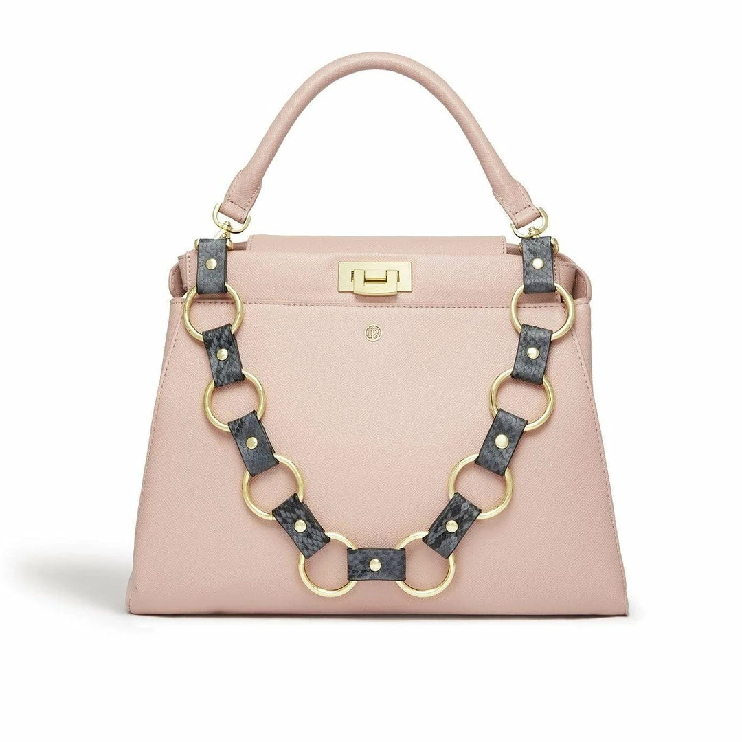 The Elm vegan shoulder bag features a flap closure and the iconic LB logo. Handcrafted with premium Blue Star vegan leather this bag ensures you have space and style for your day to day outfits. The nude colour feels like a warm pink, perfect for any season. It features two internal compartments, a central zip compartment and an additional faux snake designer strap, which converts this stunning tote into a shoulder bag. This is the perfect versatile post pandemic handbag as you can wear it as a beautiful handheld or convert it into a crossbody with its long adjustable vegan leather strap.