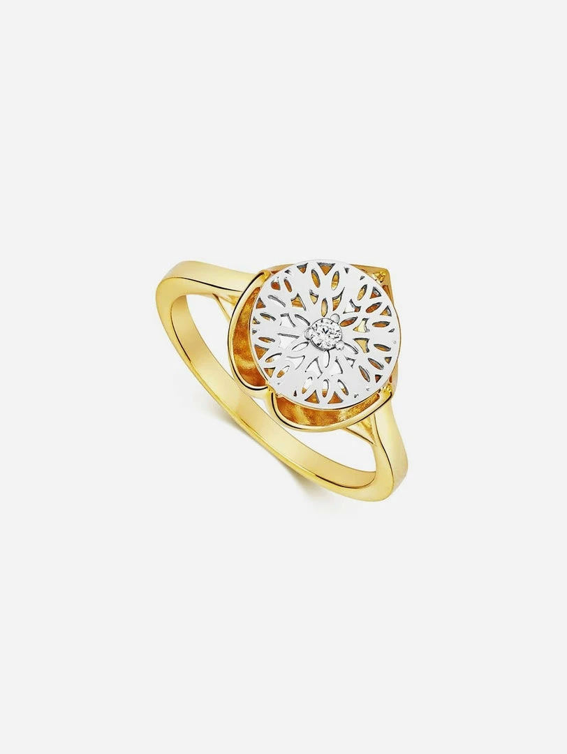 This cocktail ring, takes a signature slice of the Andalusian orange – found in the Seville collection – and sets it upon a crown setting. Inspired by a ring given to Annabel by her grandmother, the four semi-circular parts that make up the crown setting reflect both light and glamour bringing the Spanish sunshine alive. The silver top set with Cubic Zirconia, an alternative man-made, ethical and flawless stone adds sparkle to the design. This ring can be worn as a stand-alone ring or worn alongside the Crescent Ring.