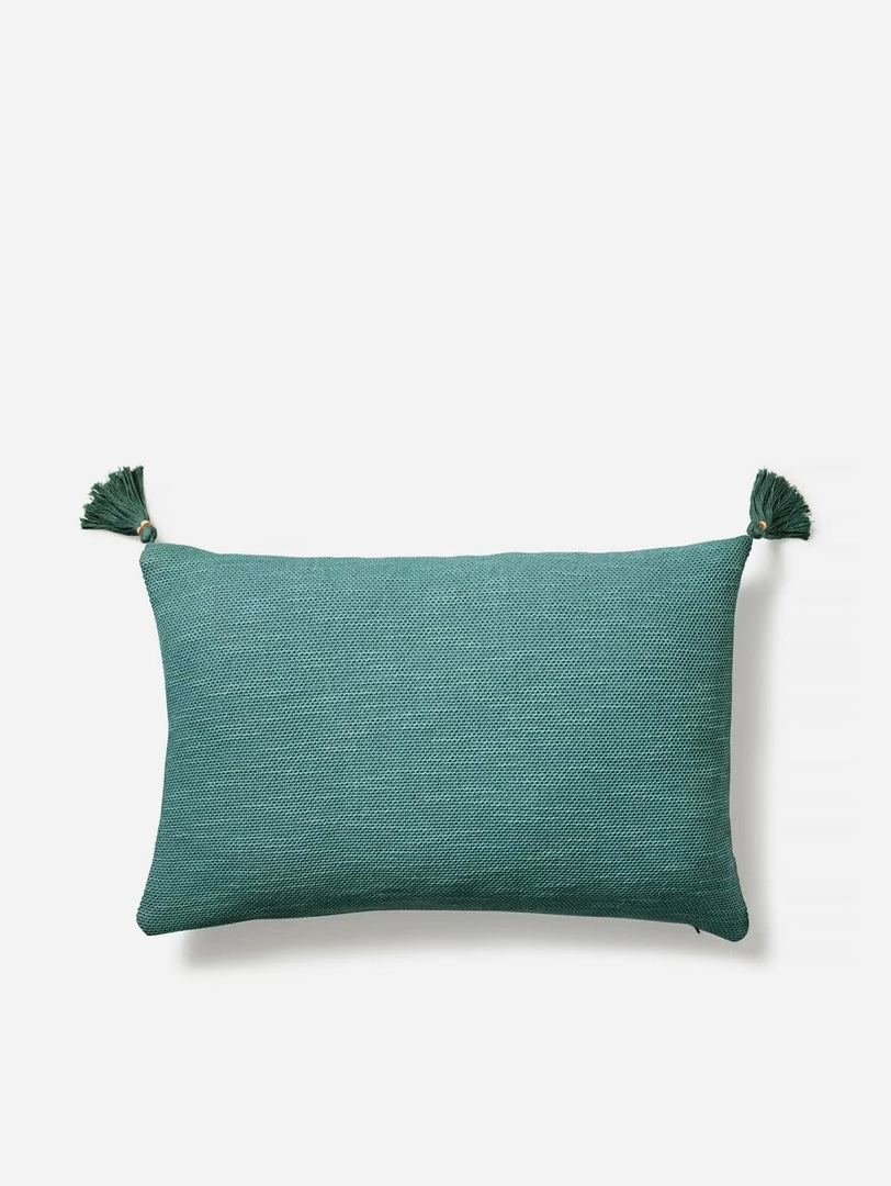 The new Emin organic cotton cushion, traditionally loomed in a simple basket weave-style, filled with a plush feather down insert. The Emin cotton cushion can take the rough and tumble of everyday living, whether on the sofa, bed or floor. Comes in tan and teal; giving a lovely, warm boost of colour and comfort to modern home decor.