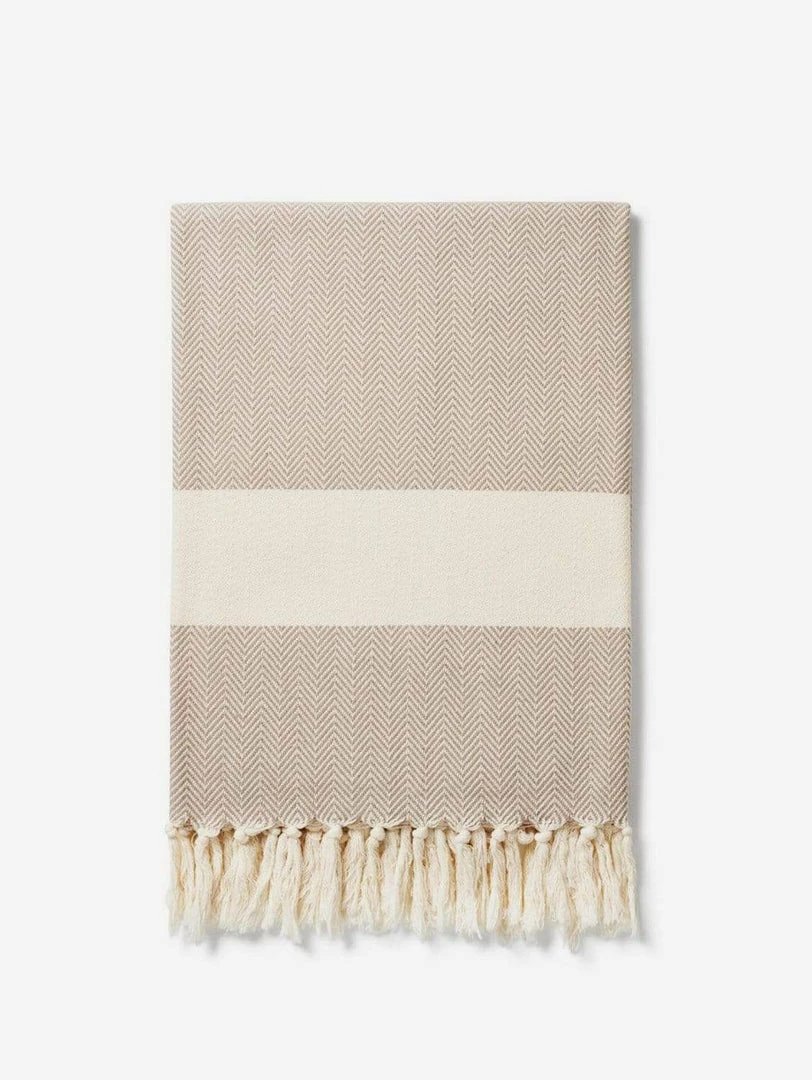 The Ferah 100% cotton blanket is shuttle-loomed in a simple, timeless herringbone weave, and is finished with ecru black stripes and hand knotted ecru tassels. At 200 x 240cm, it will look beautiful dressing a kingsize bed or large sofa.