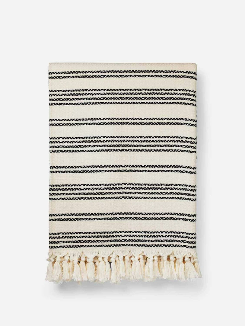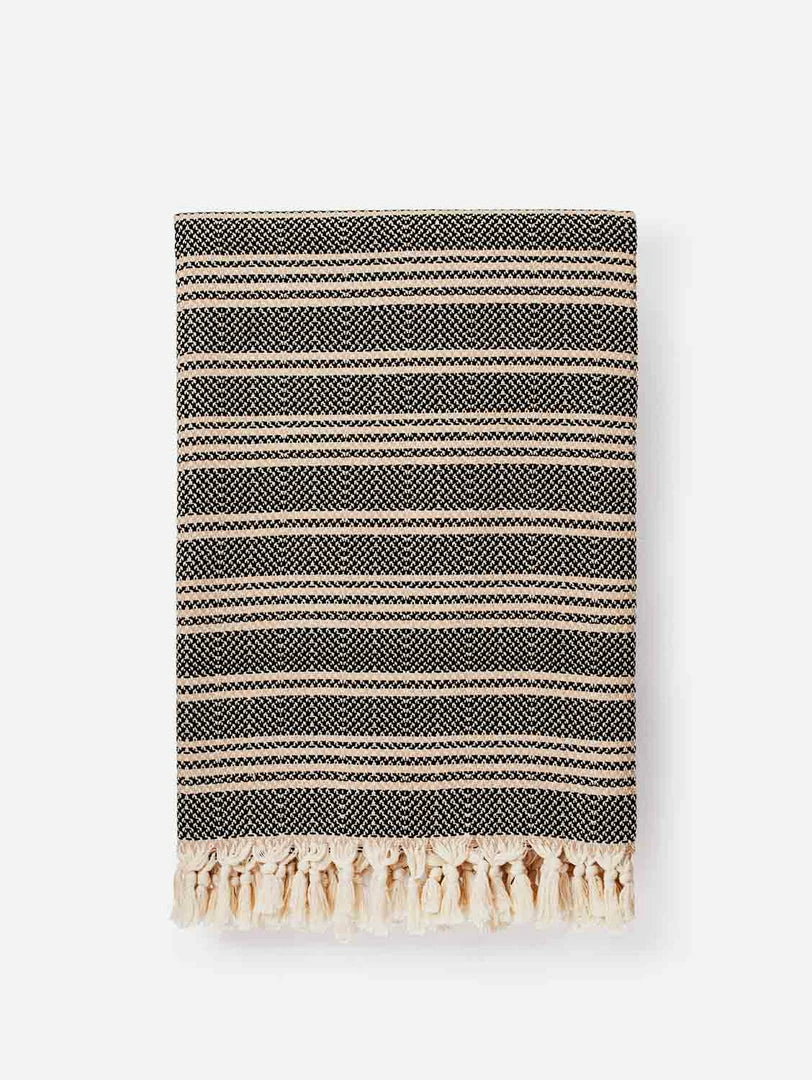 The Hilmi looks great against wicker, rattan or wood furniture, or as an added layer of texture to cotton or linen bedding, and is hand finished with knotted fringe.