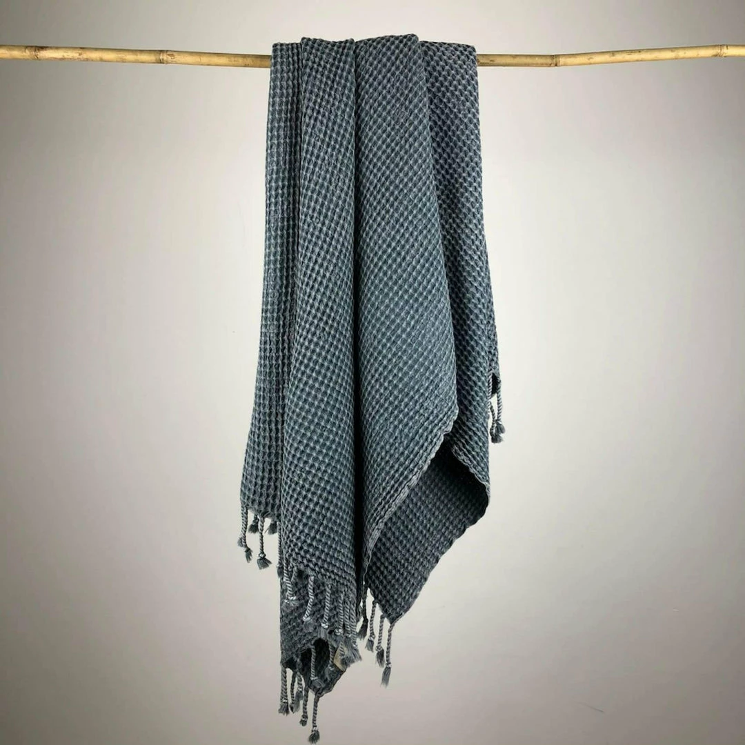 Create a sense of sanctuary with this new luxurious waffle-weave peshtemal. Traditionally made on vintage automatic looms from OEKO TEX certified non GMO cotton, the Rulo is garment dyed and stone washed, which not only creates a unique patina but also releases the natural starch from the yarn. This makes it super soft and lovely to wrap yourself in!