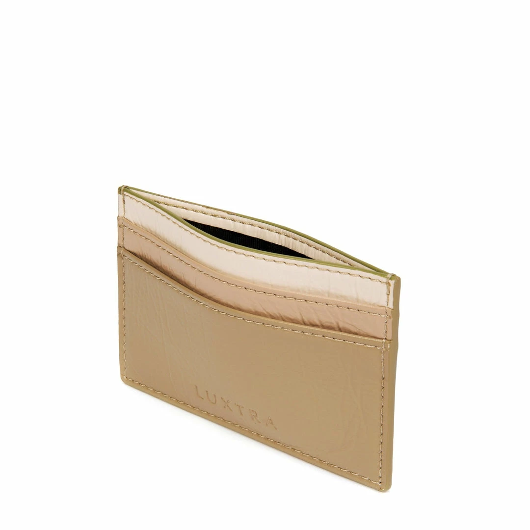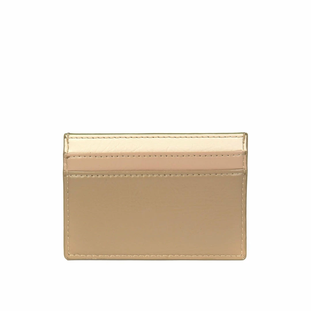Tricolour cream vegan leather card holder. Accommodates four cards with a central slot for bills and receipts.