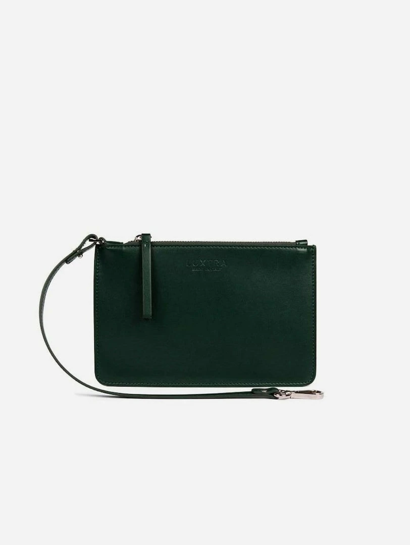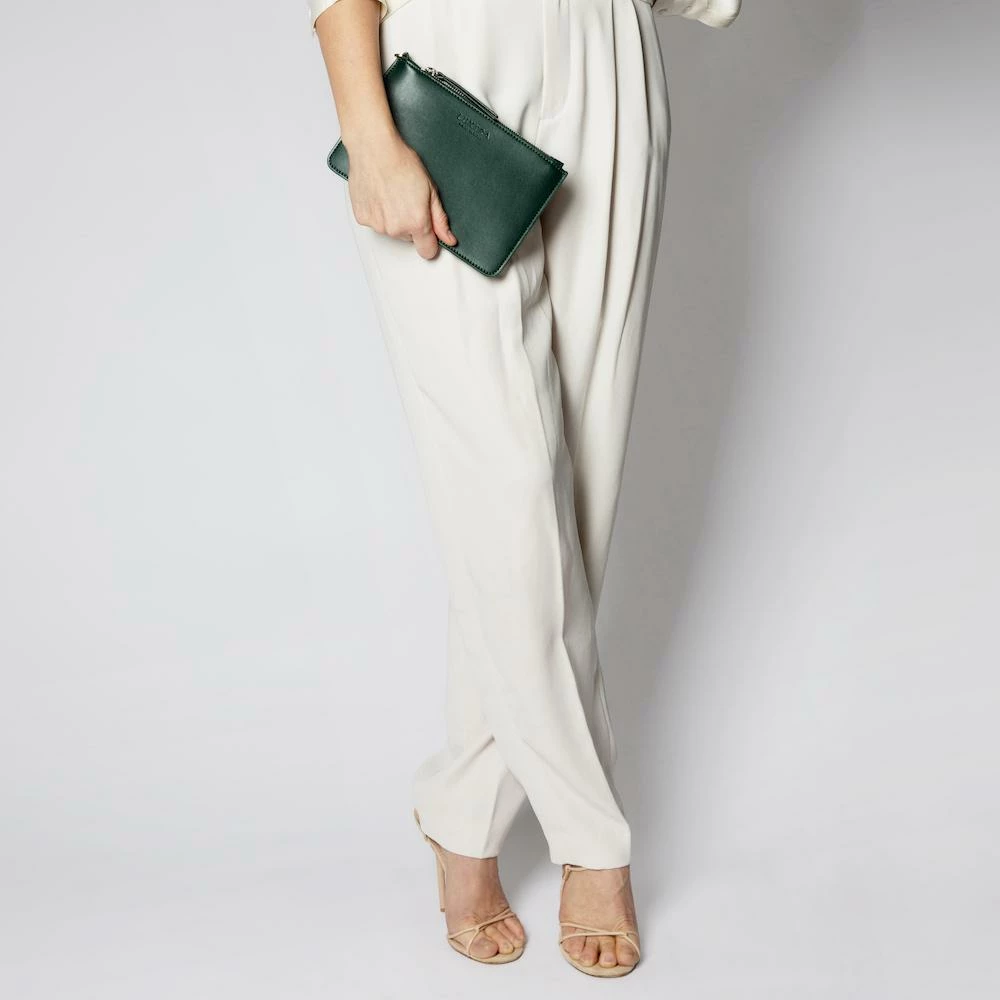 Ivy-green coloured zipped vegan pouch