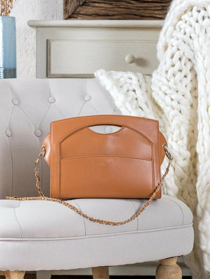 A perfect size to carry your essentials and a bold geometric shape… The Léon bag will quickly become your new essential. Choose between its braided chain and wider shoulder strap, depending on your mood of the day. Made from apple-based vegan leather, it is not only chic but also eco-friendly.