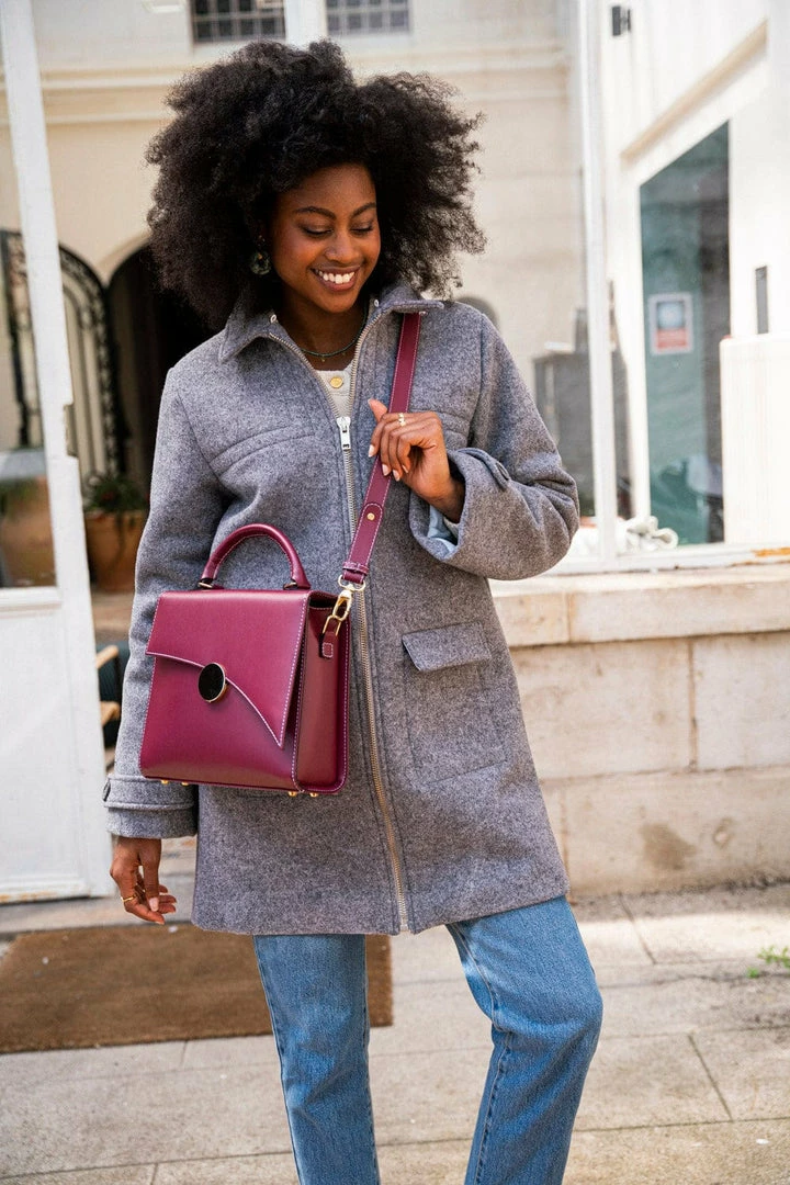 Retro atmosphere with the sublime Mazurka handbag! Its asymmetrical flap and its very chic square shape are enhanced by a touch of gold with its round clasp. Practical and Iconic, it will accompany you on a daily basis in all ethics!