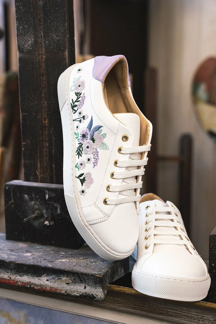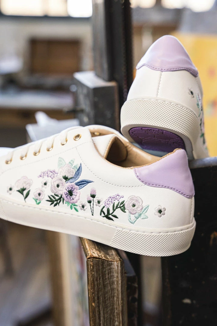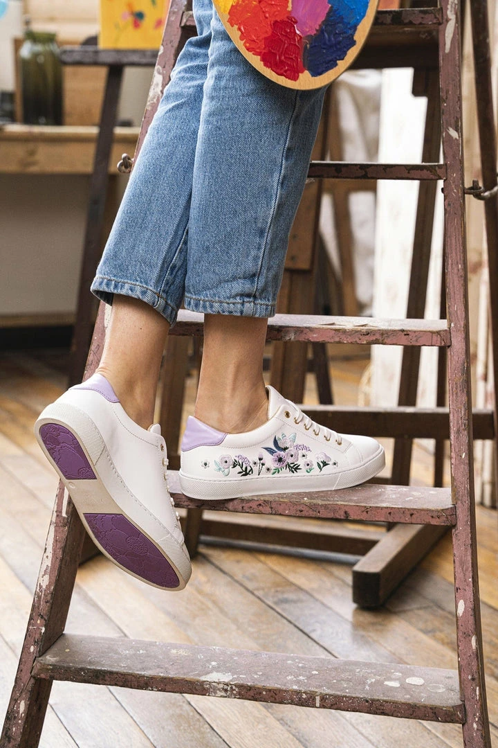 Refresh your outfits with a touch of lavender and delicate embroidery with the eco-friendly Virevolte Meadow trainers!