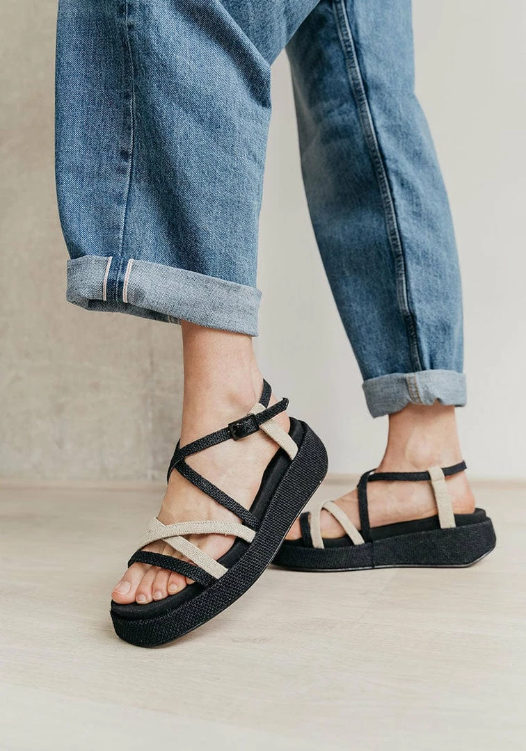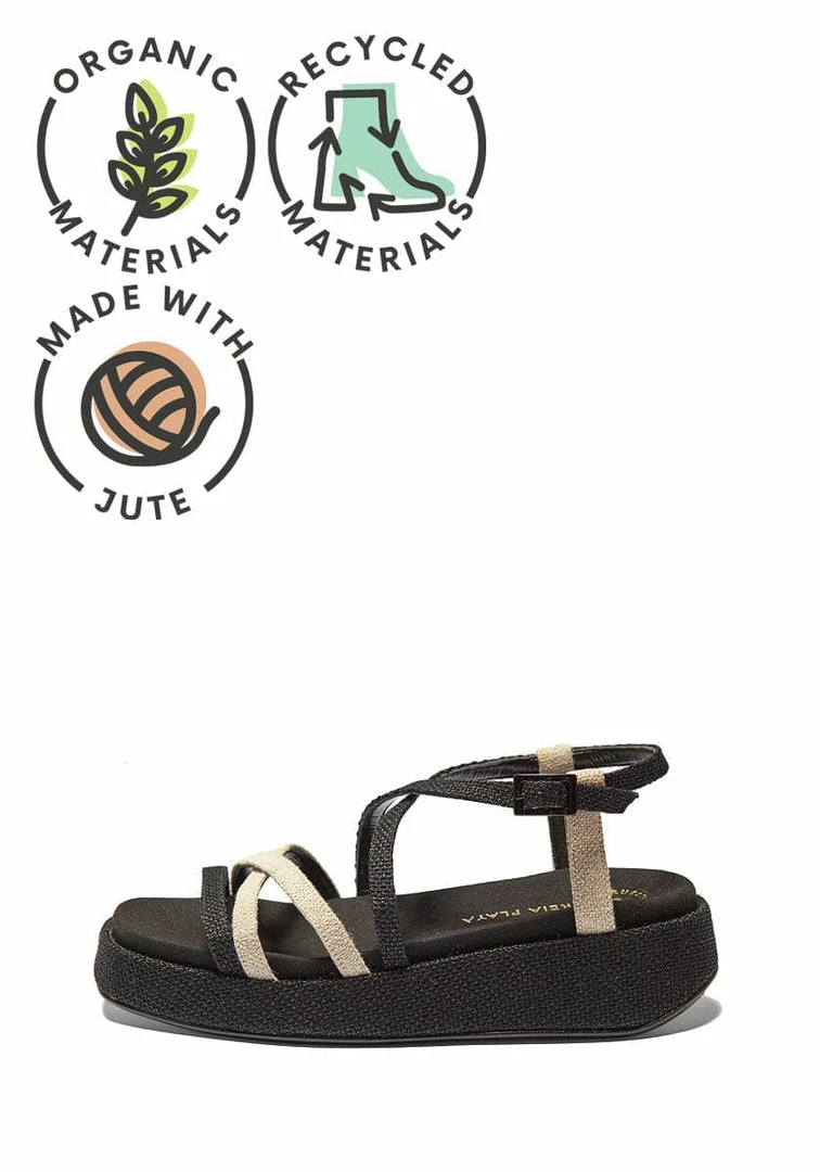 - Platform: made of cork and lined with Black jute and cotton fabric (50% ju, 50% Org co)