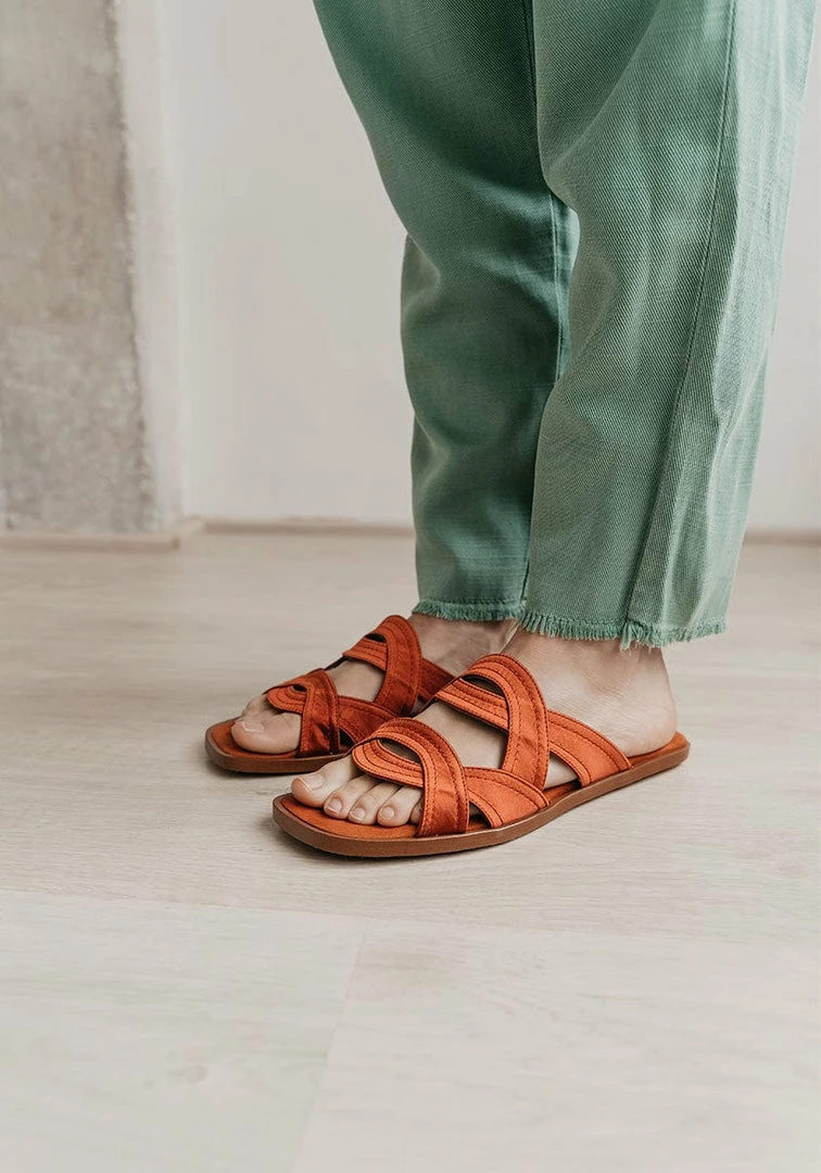 The Morgana sandals are comfortable, stylish and sustainable. These vegan heelless sandals are super easy to put on, so you can walk the streets this summer showing off your design and colour.
