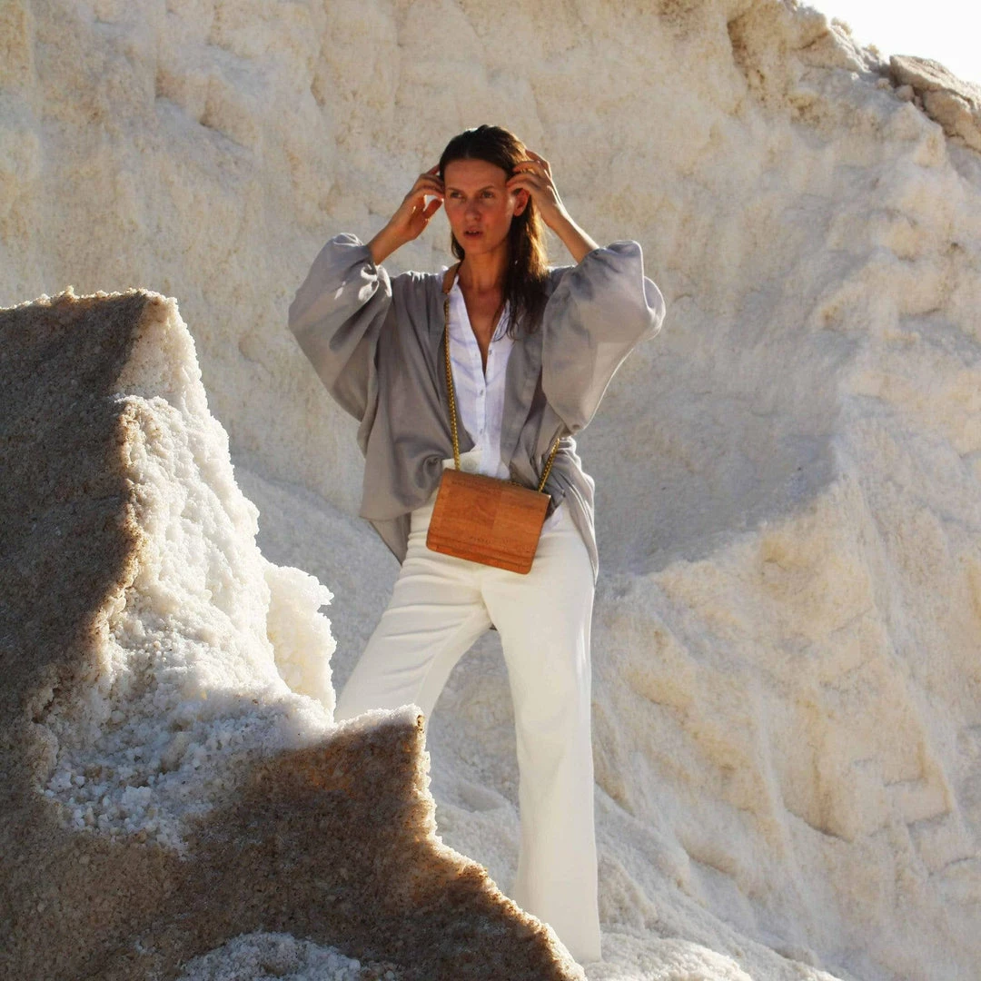 All Murmali bags are produced in a small village in the South of Portugal, near the cork tree forests where the cork is sourced from. In their workshop, all their handbags are fashioned entirely by hand with the utmost finesse.