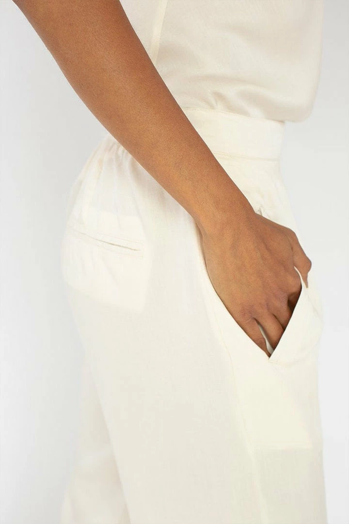 Make a striking style statement for fall with Neu Nomads wide pull on cropped ankle trousers. Cut with a slim fit, featuring side pockets and elastic at back waist. Sustainably made with botanic TENCEL™ fibres and, this easy fitting style is cut with a natural rise and elastic front that accentuates your waist, and is finished with a straight leg that exudes minimalist-modern appeal. The pull-on style creates a soft, loungewear feel, all while emulating a totally polished presence.