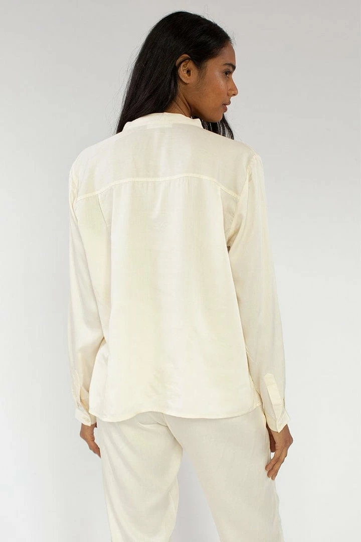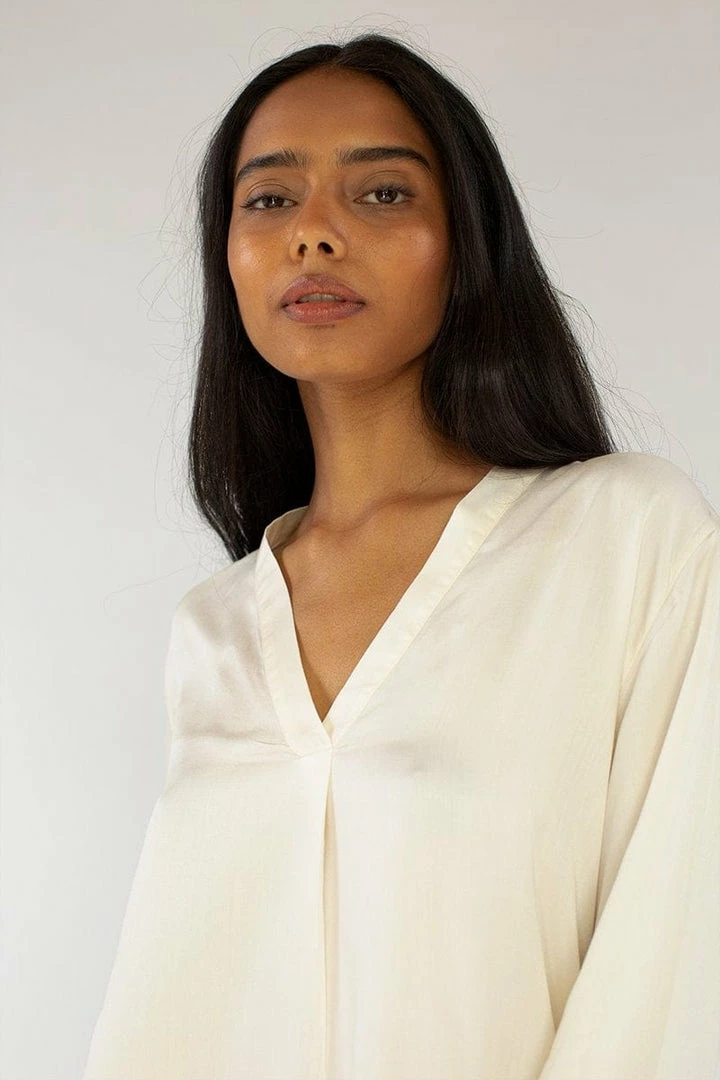 This easy fitting pullover style is your new wardrobe staple. Featuring an elegant v-neck with long sleeves and buttons at the wrist. Made in Neu Nomads luxuriously soft, lightweight and eco-friendly TENCEL™.