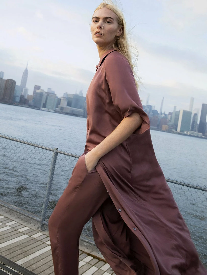 Neu Nomads’ signature Satin Lenzing Modal® is one of the most sustainable fibres in the textile industry. It is made with beech wood, a replenishable raw material, and during production, up to 95% of the chemicals used are recycled. Lenzing Modal® is CO2-neutral since the production process is integrated with cellulose recovery. This signature fabric combines aesthetics and utility in a fabric that’s as sturdy as it is feather light and lustrously soft. The all-natural fibre is a biodegradable and 100% renewable natural resource and has been responsibly manufactured using energy and water-conserving methods.
