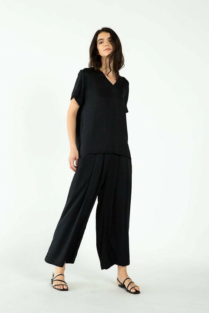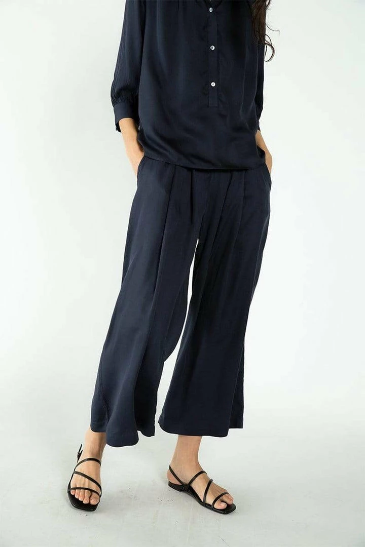 Meet your new favourite trousers. This culottes pull on style features side pockets and elasticised back waist band with a flat front finish. We love wearing ours with sandals and trainers for the transition season and booties for the cooler temperatures in fall. Made in luxuriously soft, lightweight and eco-friendly TENCEL™, also known as vegan silk.