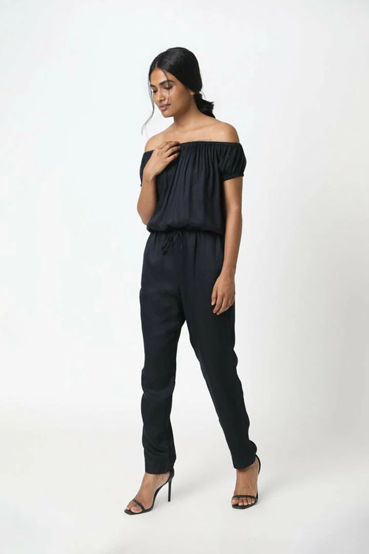Your three favourite words: stylish, soft, and sustainable. The Mia jumpsuit checks off everything on your list. Designed with an elastic, gathered neckline that can be worn on or off the shoulders. Features a drawstring waist and slim legs, this jumpsuit exudes a minimalist-chic flair that’s incredibly versatile. Sport it with sneakers or flats for a casual look, or pair with your best heels and a bold lip for a night out.