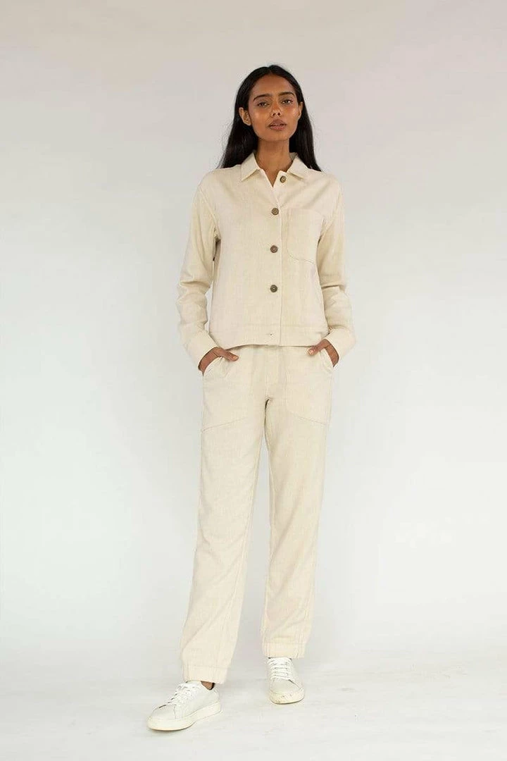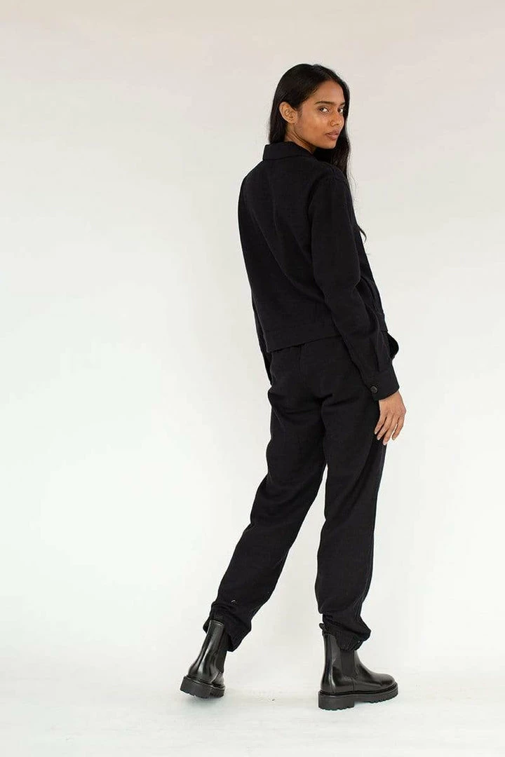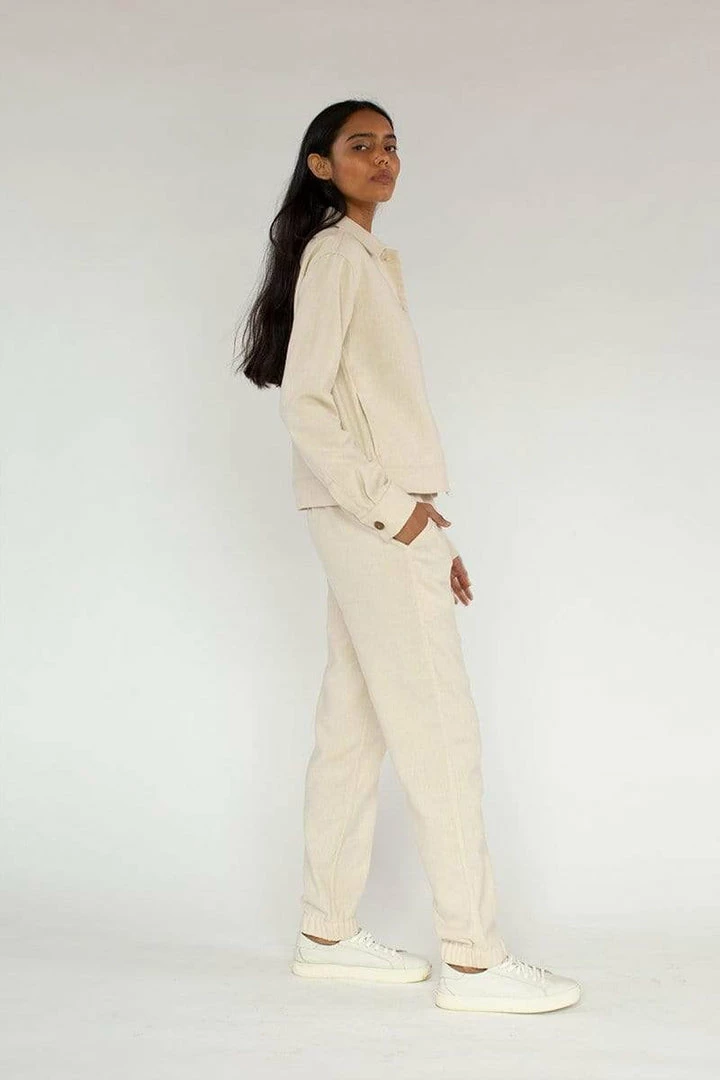 Make a striking style statement for fall with Neu Nomads pull on organic cotton track pants. Sustainably made from organic cotton in the EU, this easy fitting style is cut with a natural rise and elastic back waistband that accentuates your waist, and is finished with a tapered leg that exudes minimalist-modern appeal. The pull-on style creates a soft, loungewear feel, all while emulating a totally polished presence. Â