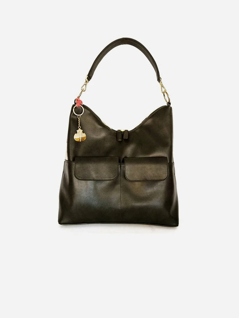 The leather-free bag LECCO will never go out of fashion thanks to its classic timeless design and comfort. It features a large and solid handle that emerges from the rounded contours of its surface, as well as two shapely pockets on the front, which can be closed with snaps. The strap allows for it to be carried both as a handbag and as a shoulder bag. Inside the bag there is a small zippered compartment, as well as an open small pocket for smartphone, keys, etc. The beautiful NOAH logo is removable and provided with a ring, so it can also be used as a chic keychain.
