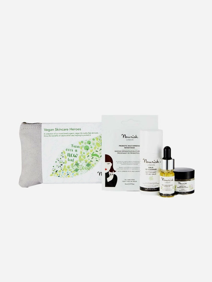 Nourish London’s best-selling and award winning hero products for a complete vegan skincare regime: