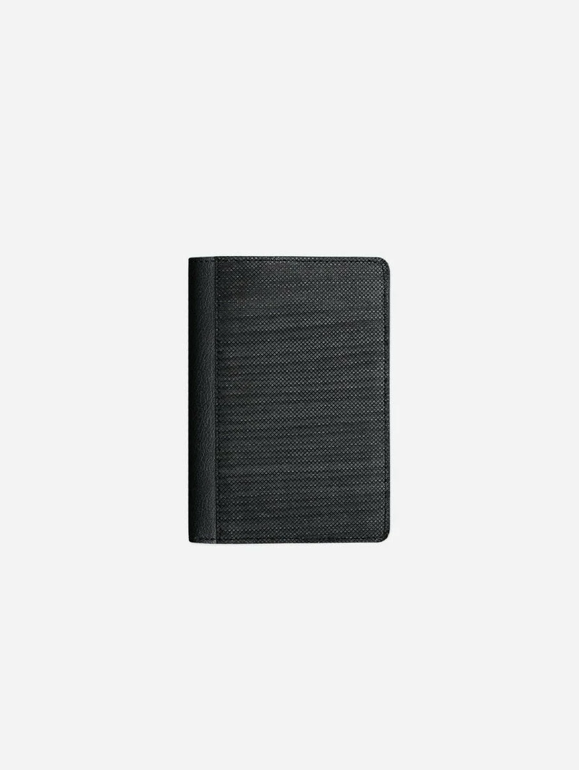 The outer section of the passport holder is made from wood leather. This innovative material is made from thin sheets of real wood bonded to a fabric using an environmentally friendly adhesive. To make the material pliable, small micro laser etchings are applied, leaving a soft leather-like touch.