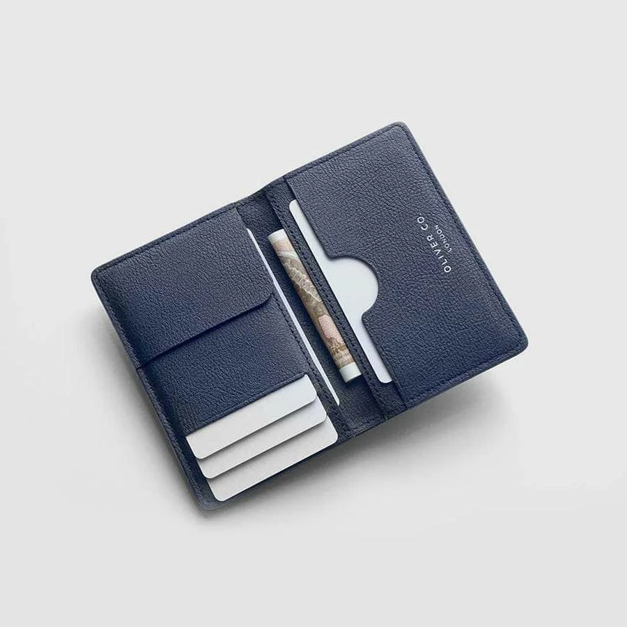 Oliver Co. signature Compact Wallet. Ethically crafted using low-impact premium Italian apple leather for a soft yet durable finish. Lined with their eco cupro satin and 100% recycled bottle lining, this incredibly slim design is suited to hold 8-12 credit cards, folded notes and receipts.Â