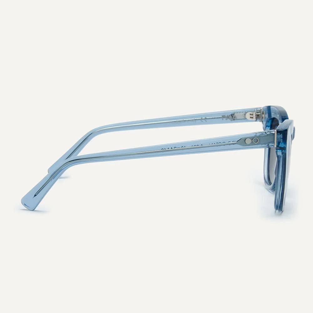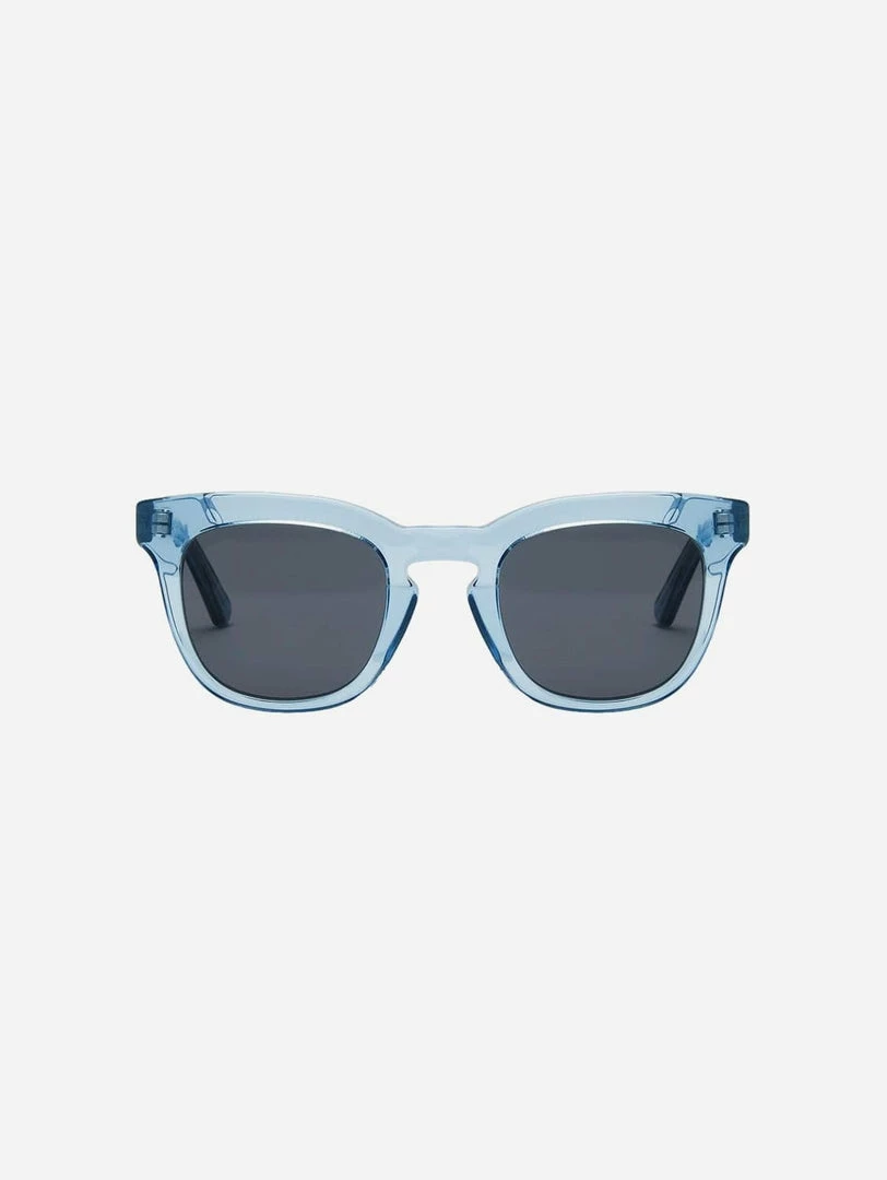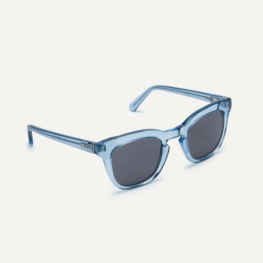 Effortlessly simple yet still bold enough to make an impact, the Pendo is a thicker framed design with a high keyhole bridge and lifted brow line. This pair works throughout each and every season. That’s ultimate cool points in our book. This sunglasses frame is in a transparent ocean blue with smoke grey lenses.