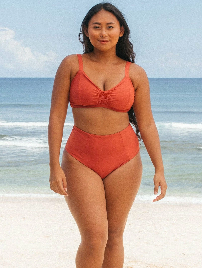 September’s Lori top is designed for fuller busts. The Lori’s adjustable shoulder and bra straps with a gathering at the centre bust for adaptability is flattering for all bust sizes. Comfort is Lori’s second name, and you’ll feel secure when moving, knowing the top will keep everything in place for you.