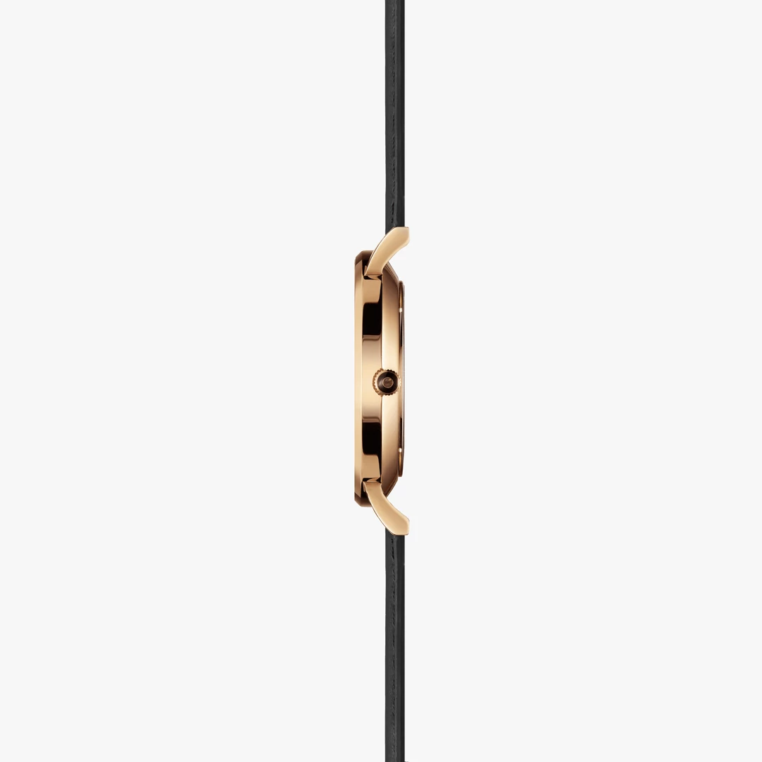 The 8mm thin Rose Gold 316L stainless steel case is topped by a Black dial with a minimalist style and offers a water-resistance of 3 ATM. The hardened mineral glass is covered with a robust sapphire crystal to limit scratches. At the heart, a solar cell allows the watch to recharge by itself and offers a 6-month energy reserve. In addition to promoting slow fashion with style, you’ll never have to change your battery.