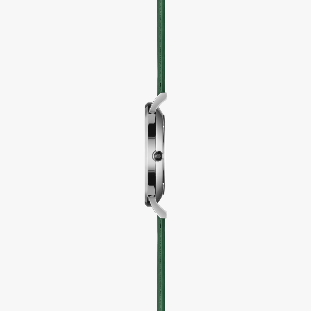 The 8mm thin silver-colored 316L stainless steel case is topped by a Black dial with a minimalist style and offers a water-resistance of 3 ATM. The hardened mineral glass is covered with a robust sapphire crystal to limit scratches. At the heart, a solar cell allows the watch to recharge by itself and offers a 6-month energy reserve. In addition to promoting slow fashion with style, you’ll never have to change your battery.