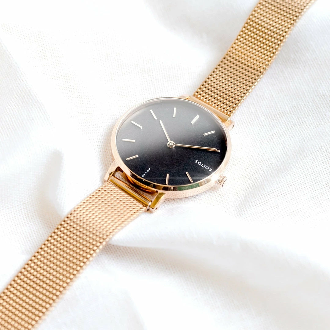 The Solios Mini Solar Watch perfectly combines aesthetic, green technology, and durable materials.