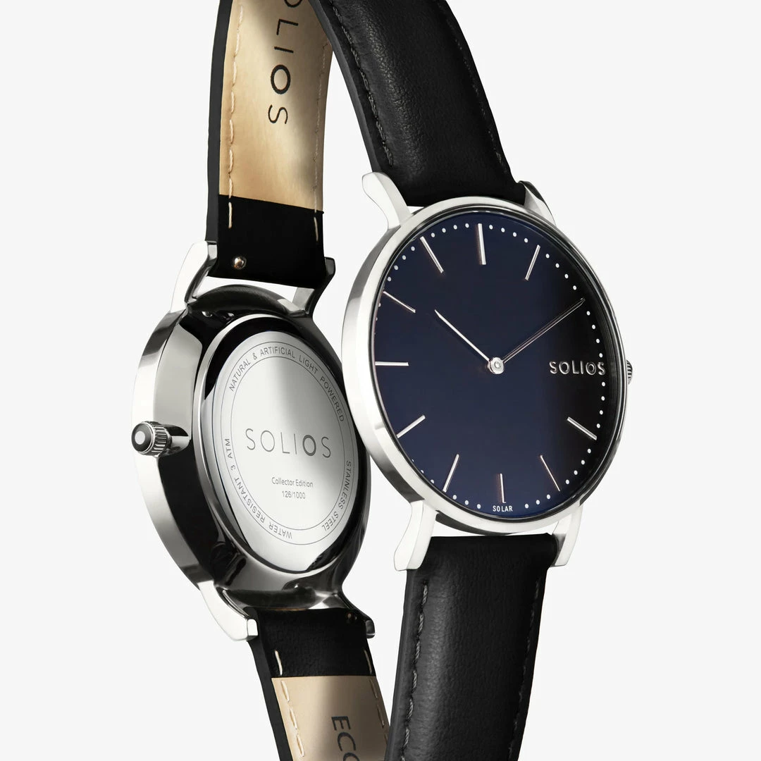 The Solios Solar Watch perfectly combines aesthetic, green technology, and durable materials.