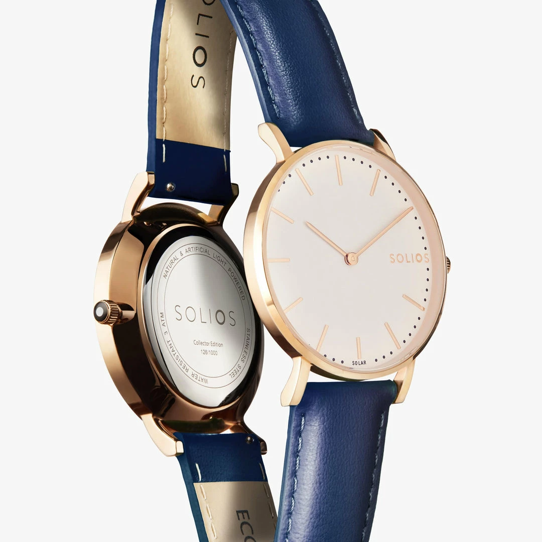 The Solios Solar Watch perfectly combines aesthetic, green technology, and durable materials.