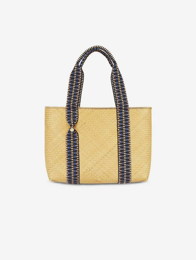 This vegan bamboo tote bag is a contemporary take on a summer favourite. Robust and lightweight in equal measure, it is handcrafted using traditional Lombokian weaving skills, offset with contemporary jacquard straps. Sling the bag over your shoulder for trips to the market and beach alike.
