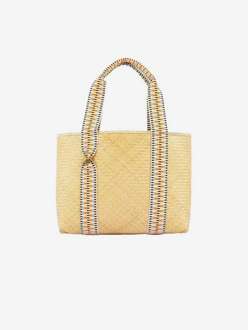 This vegan bamboo tote bag is a contemporary take on a summer favourite. Robust and lightweight in equal measure, it is handcrafted using traditional Lombokian weaving skills, offset with contemporary jacquard straps. Sling the bag over your shoulder for trips to the market and beach alike.