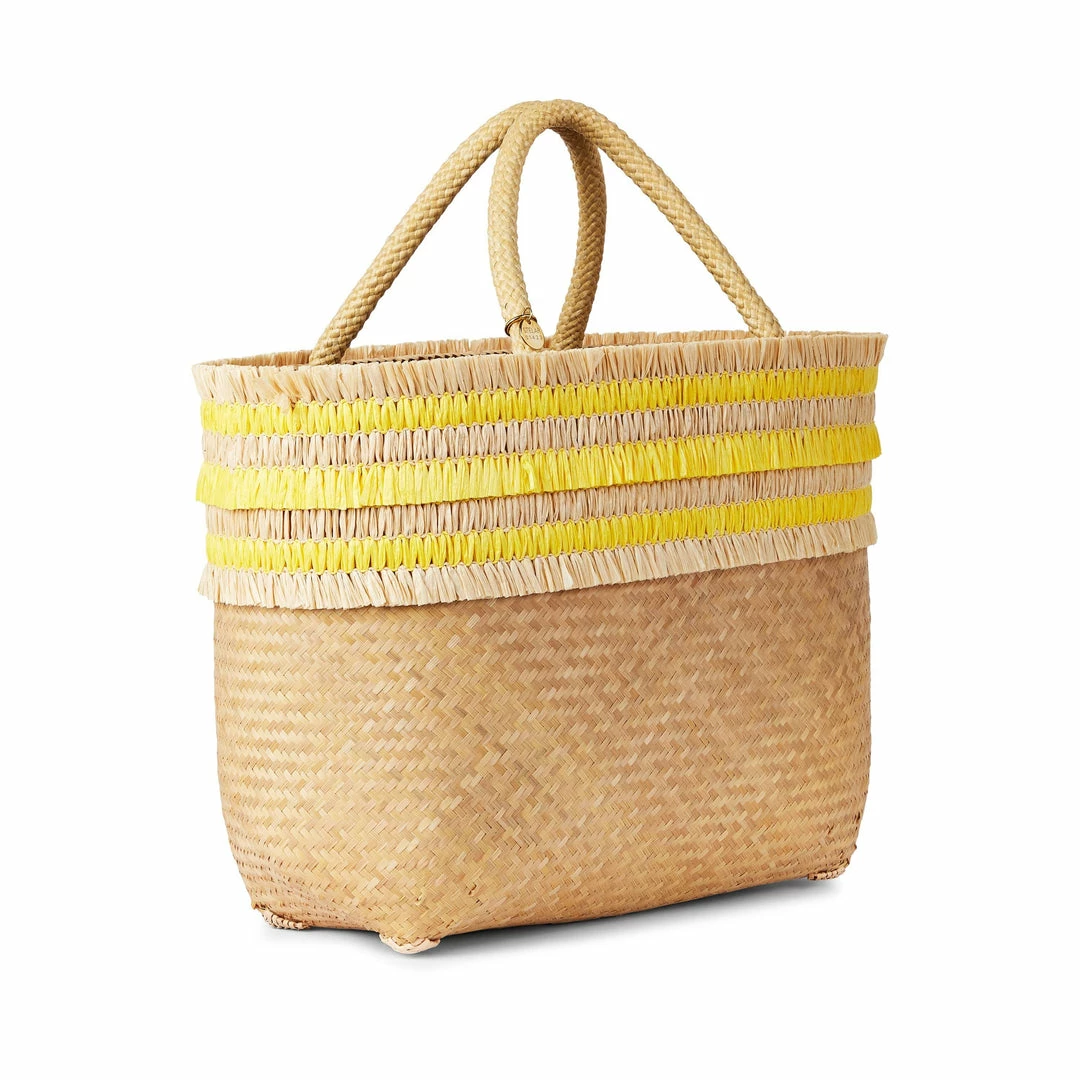 - Trimmed with two-tone Sunshine Yellow cellulose raffia and cellulose raffia rope straps