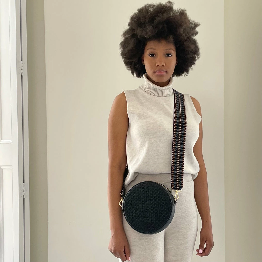 This striking jacquard cross-body strap can be worn with any STELAR bag or wallet that comes with a detachable strap.