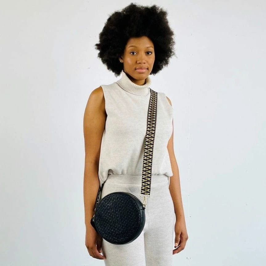 This striking jacquard cross-body strap can be worn with any STELAR bag or wallet that comes with a detachable strap.