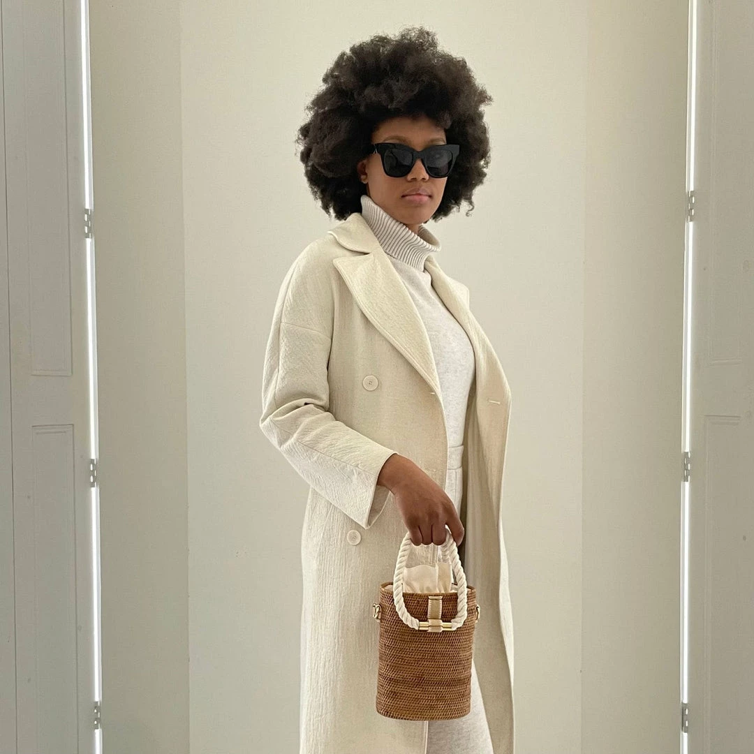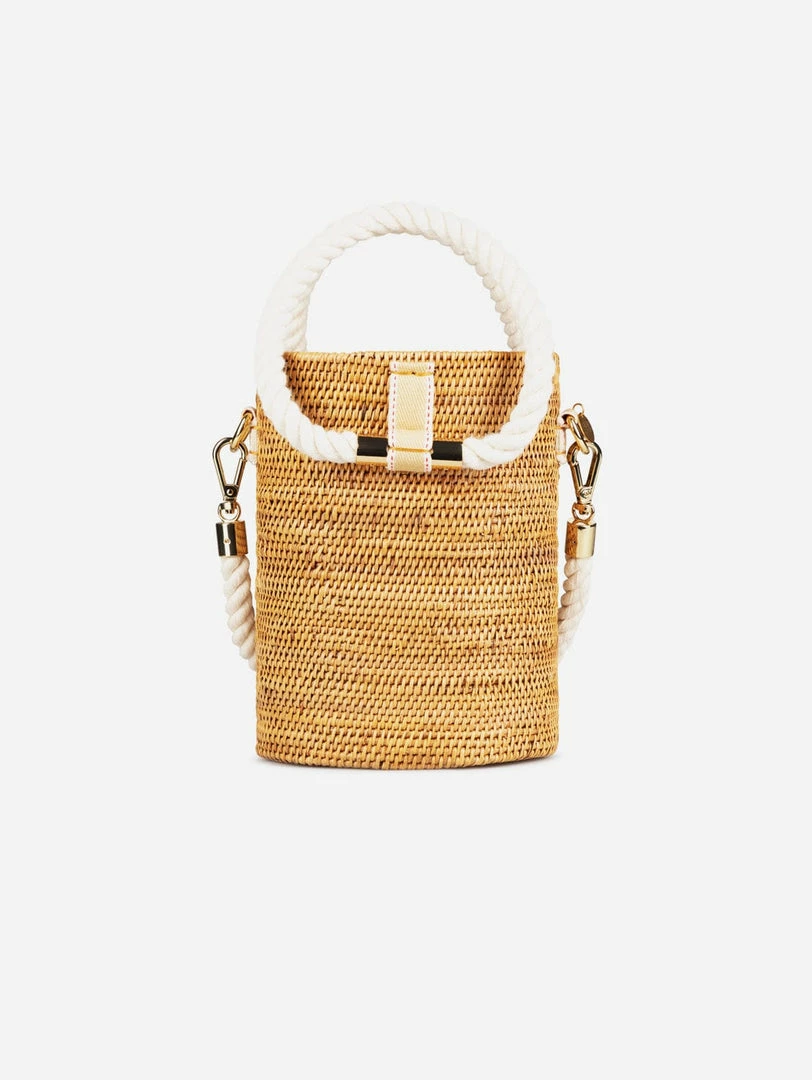 This vegan barrel bag is made from hand-woven natural atta grass that wears beautifully over time, and is perfect for vacation or balmy days in the city.