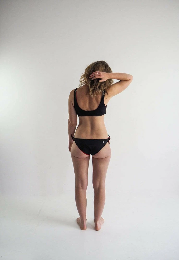 The tie-sides give you a variety of sizes depending on your shape. The bottom coverage is mid-to-full, so very practical for all adventures.