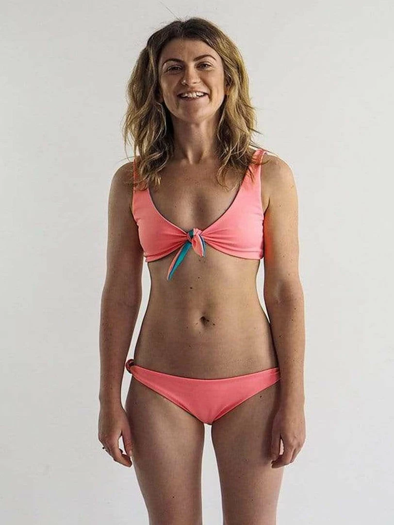 The tie-front top gives you support and comfort while the thicker back strap gives you better support. The tie fits directly below the bust and tightens well in a knot – it will not come undone.