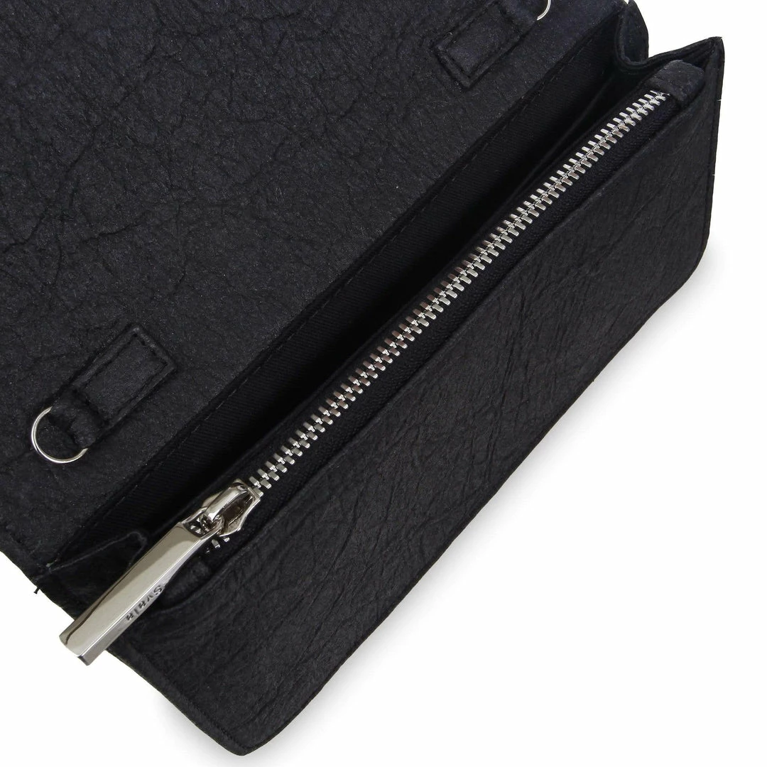This convertible wallet is handcrafted with the natural, innovative Piñatex® fabric, made from pineapple leaf fibre gathered by partner farming cooperatives in the Philippines. Piñatex® fibres are the by-product of the pineapple harvest. No extra land, water, fertiliser or pesticides are required to produce the raw material. No pineapples are harmed in the making of Piñatex®!