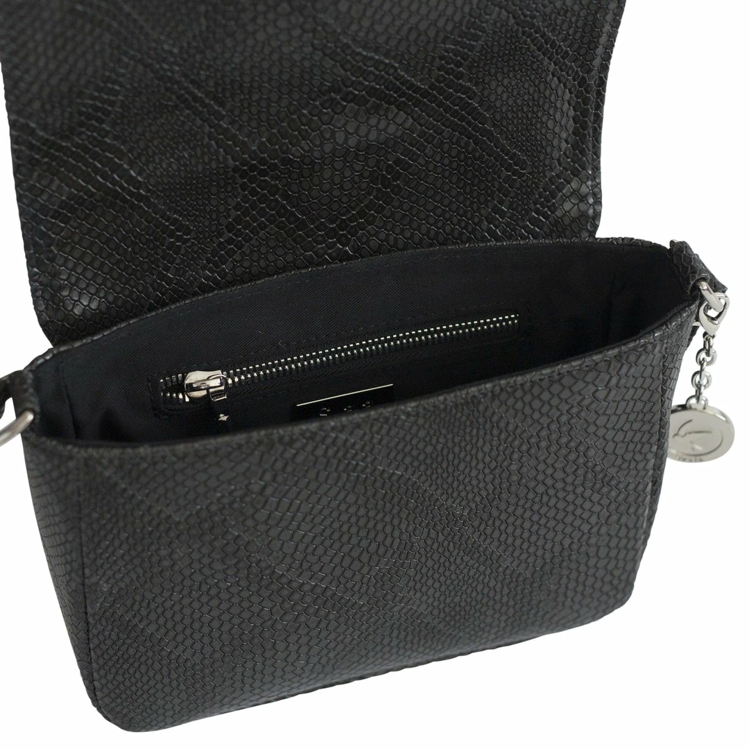 The Tashi Crossbody is perfect for day or night, large enough to hold a small wallet but compact enough to accompany you on a night out. Handcrafted from black luxurious Italian vegan leather, in a gorgeous embossed vegan snakeskin. Cute, sustainable and versatile, this bag the perfect ethical upgrade to your outfit!
