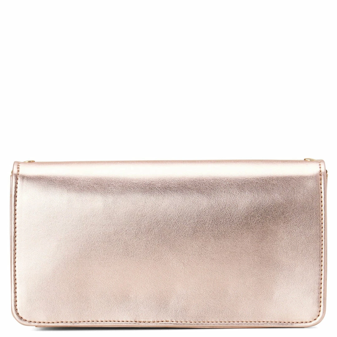 The Sara wallet purse is perfect for the girl on the go. This vegan wallet is great for daily use and doubles as a purse – just add the detachable gold chain or crossbody strap. This convertible wallet is handcrafted from rose gold Bioveg.
