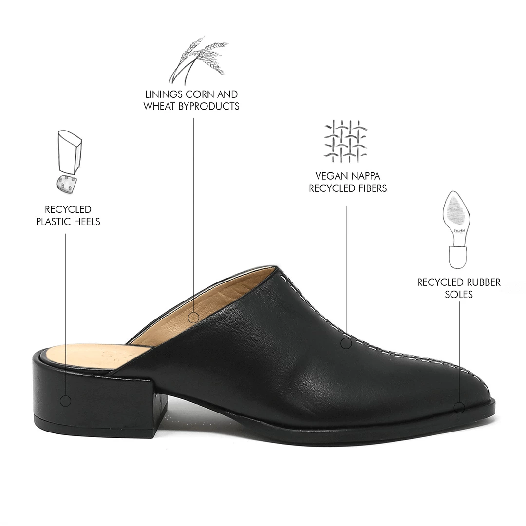 Outfitted with a gorgeous oversized hand-sewn stitching detail, we welcome Cass – Sylven’s first ever slip-on mule. All about the small things, the contrast white stitching adds just the right touch of je ne sais quoi. A beautiful pointed almond toe, and two-inch block heel make these your new staple.