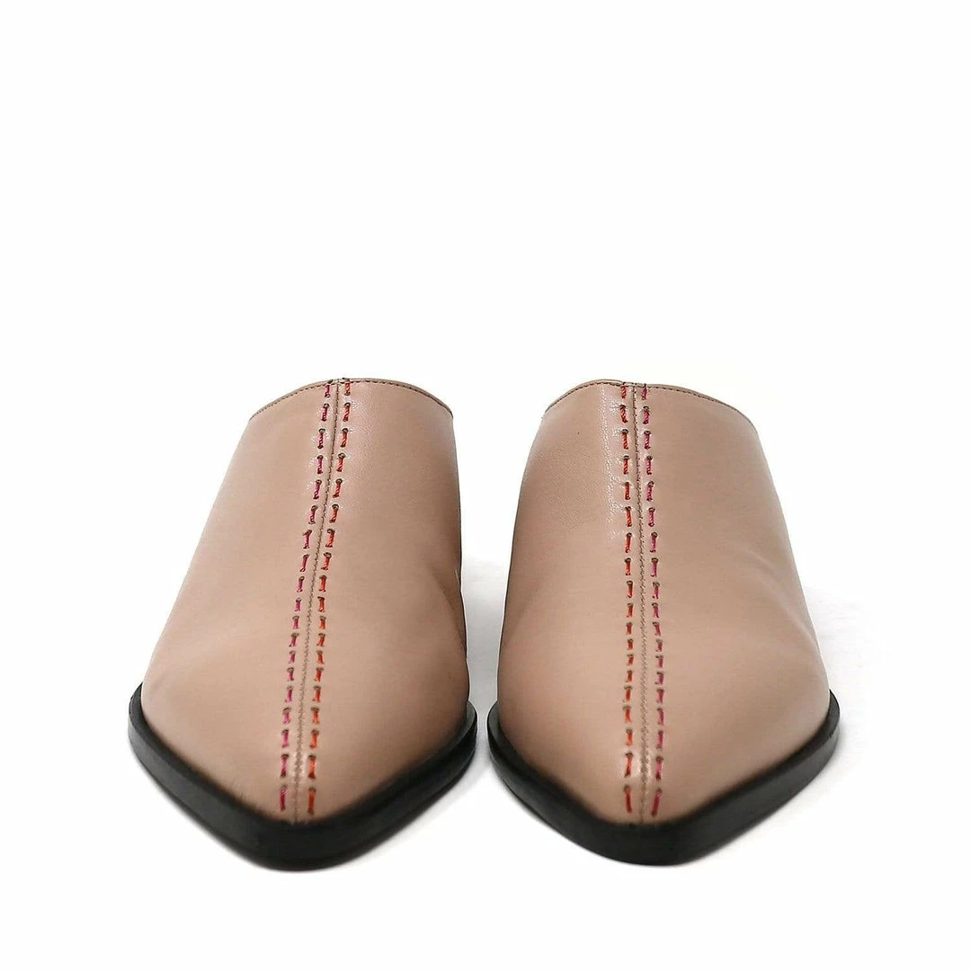 Outfitted with a gorgeous oversized hand-sewn stitching detail, we welcome Cass – Sylven’s first ever slip-on mule. All about the small things, the contrast white stitching adds just the right touch of je ne sais quoi. A beautiful pointed almond toe, and two-inch block heel make these your new staple.